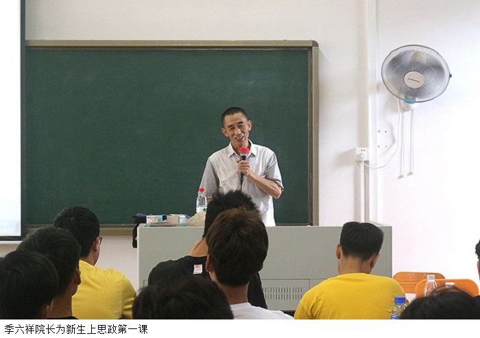 本网讯(经济管理学院)为深入学习贯彻习近平总书记关于常态化疫情防控工作的重要指示,树立新生正确的价值观和人生观,9月24日,经济管理学院季六祥院长、党总支甘怀南书记、党总支吴楚升副书记为我院2020级本科新生讲授了“思政第一课”。