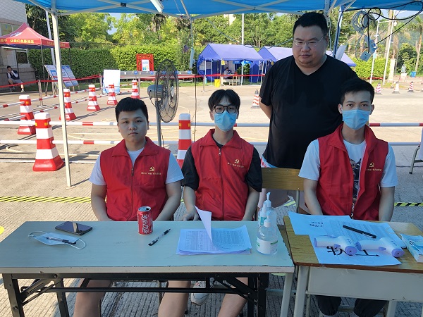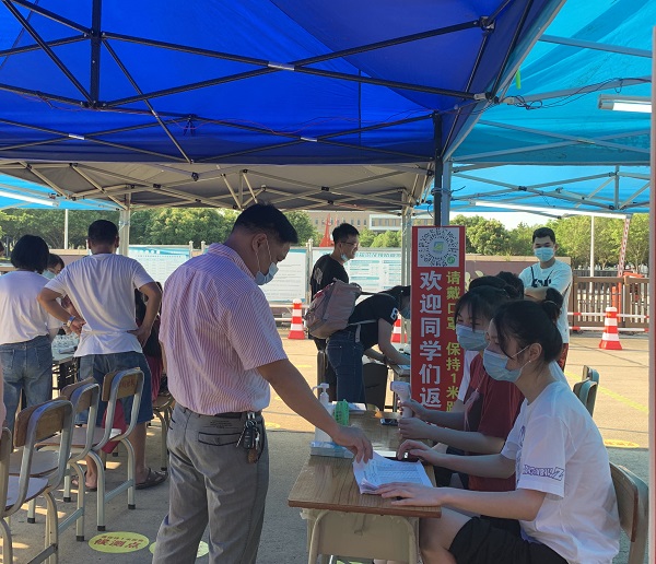 本网讯(信息技术学院 曾泽伟)校门防控是学校疫情防控的第一道关口,为确保开学后在校师生安全且做好学生防疫工作,7月14日,信息技术学院党总支梁星全书记,辅导员以及学生志愿者在校门口设立返校服务点,迎接学生返校。