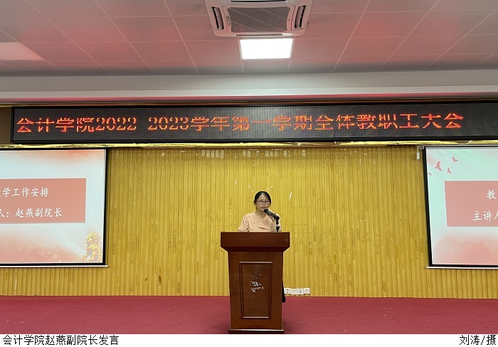 本网讯(会计学院 黄琳琳)9月13日,会计学院在高要校区42101召开以“迎接合格评估,树立师德师风”为主题的2022-2023学年第一学期全体教职工大会,院长盛洁、党总支书记黎伯毅、副院长赵燕、副院长郑春晓、党总支副书记徐永明和全院教职工参加会议。徐永明副书记主持会议。