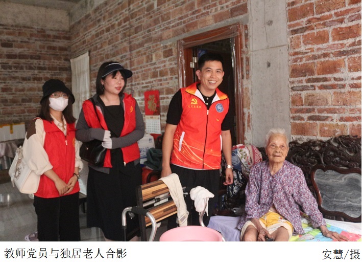 本网讯(建设学院教工党支部)在党的二十大来临之际,为了弘扬革命传统,赓续红色精神,9月20日下午,建设学院教工党支部对葫芦园村部分老党员进行慰问。本次活动由建设学院党总支书记周景报,副院长蒙子伟带队,各党员教师积极参与。