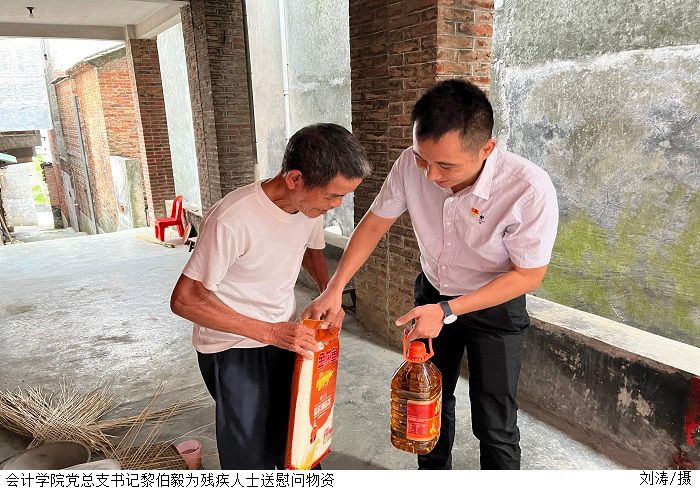 本网讯(会计学院新闻中心)为进一步弘扬中华民族扶弱助残的传统美德,积极响应国家政策的号召,倡导扶残助残的良好社会风尚,9月27日下午,会计学院党总支赴夏岗村开展了“扶残助困”慰问活动。参与此次活动的人员有会计学院党总支书记黎伯毅、党总支副书记徐永明、教工党支部书记郑春晓,教工党支部委员刘涛以及两位党员学生代表。