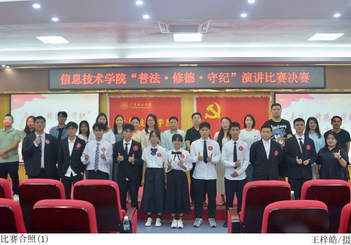 本网讯(信息技术学院 张玉玺)为了普及法律知识,培养学生形成遵纪守法的观念,促进优良学风建设。11月14日下午14:30,信息技术学院于振华楼101室开展“普法·修德·守纪”演讲比赛决赛,出席本次活动的人员有党总支书记梁星全、党总支副书记冷云峰及全体辅导员老师。