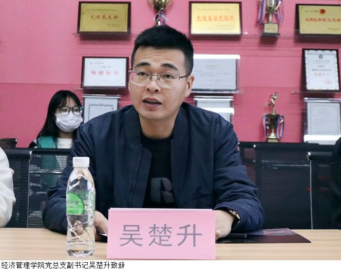 活动伊始,经济管理学院党总支副书记吴楚升作开场致辞。他指出,“感恩”是一种生活态度,是做人的修养和道德准则,更是一种社会责任。实施感恩教育是经济管理学院加强德育教育工作的重要内容。他鼓励同学们要将感恩之心付诸行动,积极践行社会主义核心价值观,并希望受到表彰的同学要在今后的生活中起模范作用,带领经管学子“怀感恩之心,担时代之责”。最后,他预祝本次“感恩奋进,励志成才”感恩教育系列活动颁奖典礼取得圆满成功。