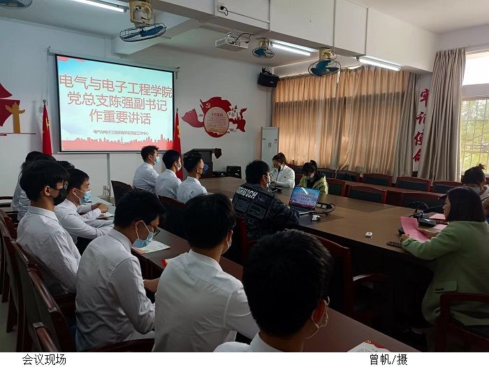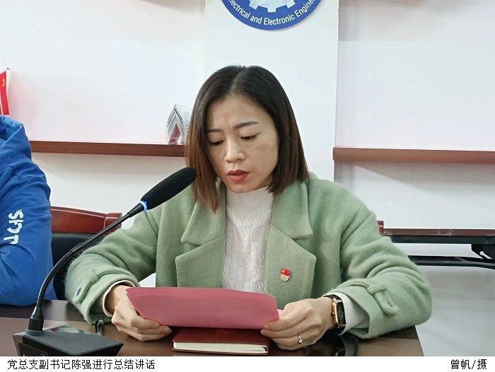本网讯(电气与电子工程学院 叶运黎/范美凤)12月12日中午,电气与电子工程学院在7203举行2022年预备党员入党宣誓仪式。党总支副书记陈强,学生党支部书记叶运黎、宣传委员胡涵、组织委员叶家宜,新发展预备党员参加大会。