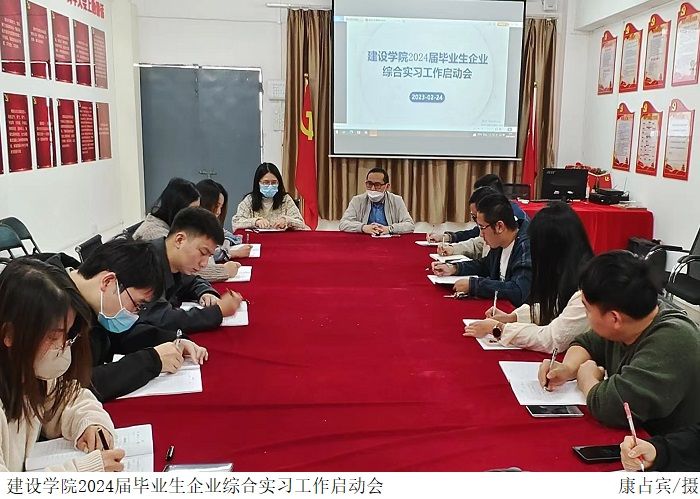 本网讯(建设学院 刘璐)为进一步推进建设学院毕业生就业工作,完成毕业生就业,建设学院于2月24日9:00在3210室召开了2023届毕业生就业工作推进会暨2024届毕业生企业综合实习工作启动会。本次会议由建设学院党总支书记周景报主持、学校就业指导中心老师陈一华和23、24届毕业生辅导员参加会议。