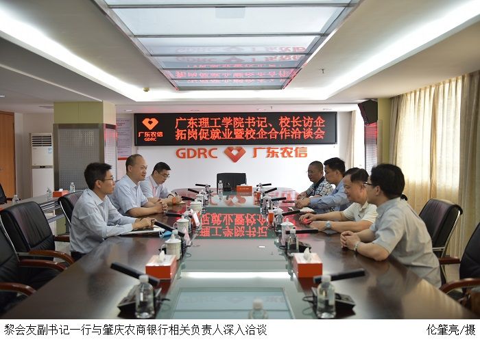 本网讯(经济管理学院 伦肇亮) 4月15日,为高质量贯彻党中央、国务院关于“稳就业促就业”决策部署,扎实推进学校关于开展书记、校长访企拓岗促就业专项行动,学校党委副书记黎会友、就业办副主任梁杰、经济管理学院党总支书记甘怀南等一行四人先后走访了肇庆农村商业银行股份有限公司和广东金叶投资控股集团有限公司。