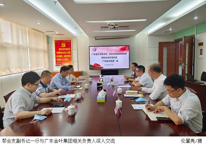10点30分,黎会友一行继续走访,来到广东金叶集团。金叶集团总裁助理陈大叠等企业负责人热情接待。洽谈会上,陈大叠率先提出,金叶集团作为政府融资平台和国资优秀企业,下辖30多家公司在金融、会计、国经贸等方面的应用型人才缺口较大,学校领导能高度重视亲自访企拓岗促就业,真正做到了急企业之所急,希望能尽快落实应届毕业生招聘的相关事宜。黎会友一行就企业所关心的问题逐一解答,最后落实了下一步合作方案以及双选会的各项计划。广东金叶集团表示将尽快完善合作细节与学校签订合作协议。