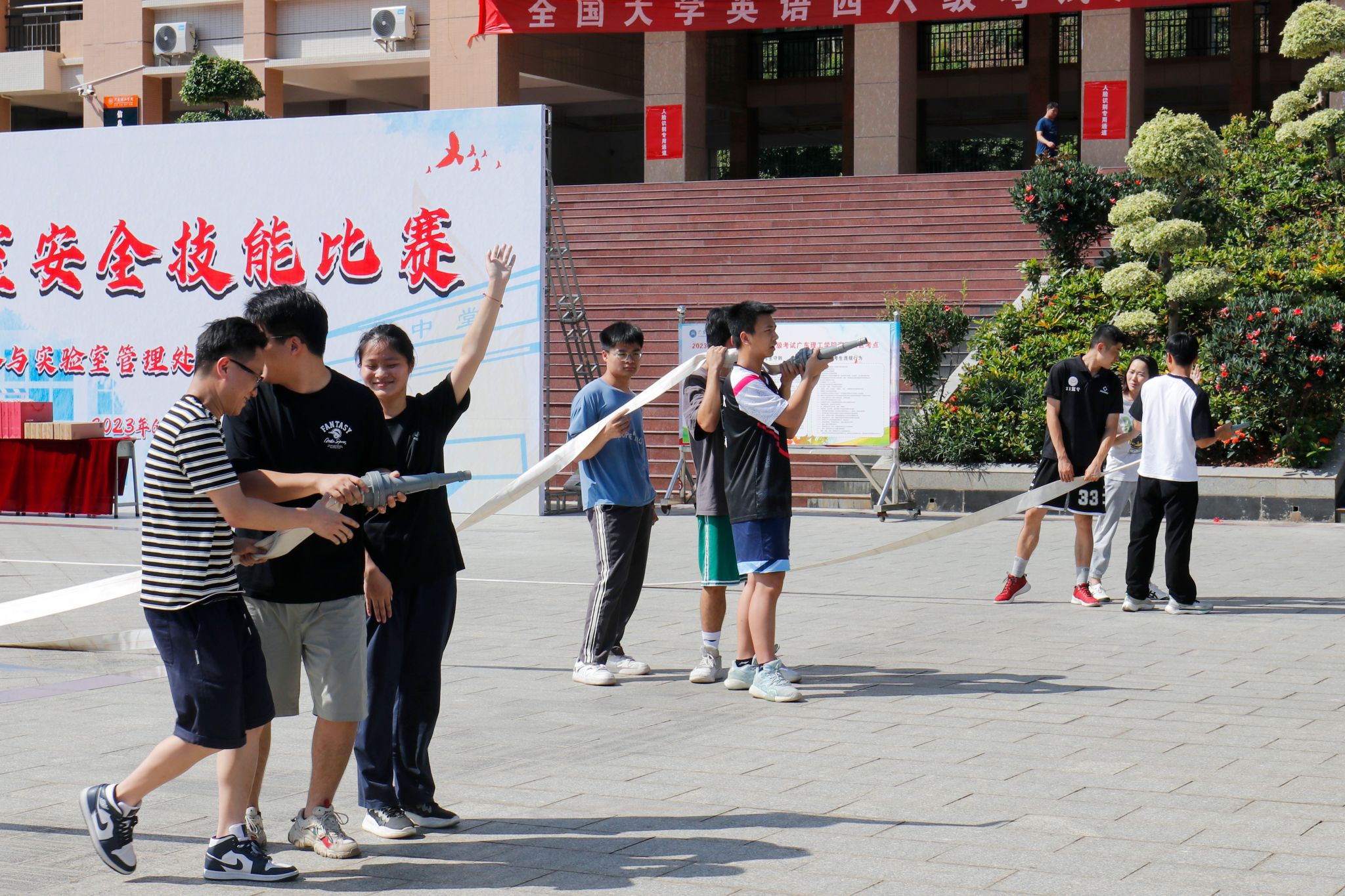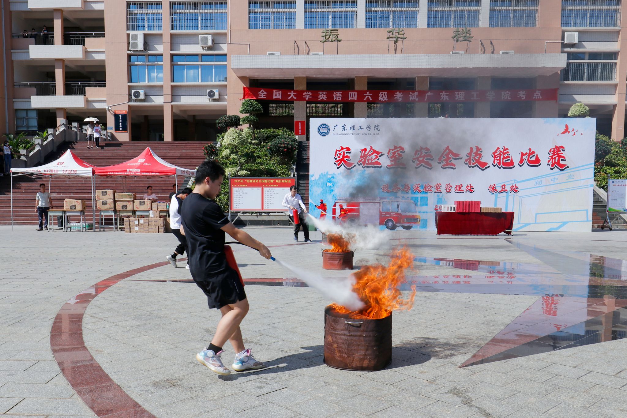 本网讯(宣传部 邓伟华)2023年6月是全国第22个安全生产月。为深入贯彻党的二十大精神和习近平总书记关于安全生产重要论述,始终把校园安全摆在各项工作的首位,6月20日下午,鸭脖官网实验室安全技能大赛在振华楼广场前成功举办。