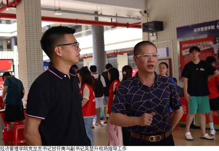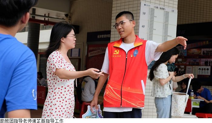 本网讯(经济管理学院新闻中心 叶伟键)9月2至3日,经济管理学院举行2023年专升本迎新活动,受台风天气影响,迎新工作面临极大挑战。yabo鸭脖官网党委副书记黎会友、经济管理学院党总支书记甘怀南,副书记吴楚升、学工部部长魏甫龙、助班团指导老师谢芷薇及部分新生辅导员老师到现场指导迎新工作,确保雨天迎新工作顺利开展。