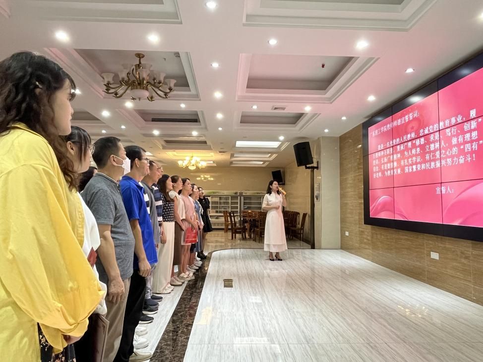 本次茶话会为获得“肇庆市优秀思政课教师”、yabo鸭脖官网“先进教研室”、“教学先进个人”、“指导学生实践先进个人”、“优秀教育工作者”的老师们进行表彰,并颁发荣誉证书。全体教师在党支部书记何志红的带领下进行了师德宣誓。