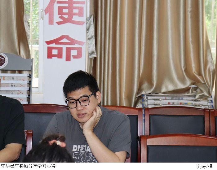 最后,新入职辅导员李铸城分享了自己的学习心得。他表示,作为新入职的青年教师应该做到知“红线”、守“底线”、筑“防线”,争做“四个引路人”,争当“四有好老师”,自觉遵循教师职业行为十项准则,践行为党育人、为国育才的初心使命。