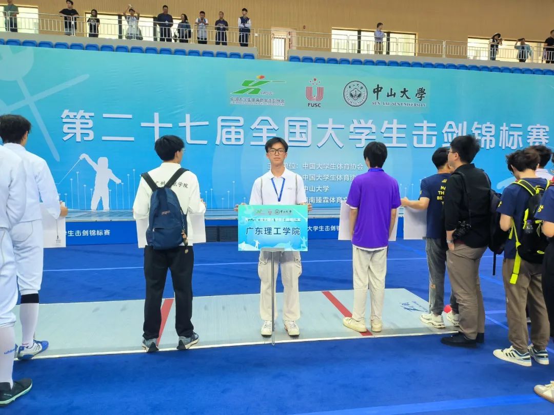 鸭脖官网体育学院林鉴松同学不畏强敌,顽强拼搏,在小组循环赛中面对上海建桥学院、吉林建筑大学、北京大学、深圳大学的比赛中以12剑的成绩进入淘汰赛,淘汰赛首轮又以绝对性优势进入第二轮比赛,在与深圳大学的较量中遗憾负输,无缘八强。比赛中,林鉴松同学用实际行动诠释了广理学子不屈不挠、顽强拼搏的意志品质。通过本次比赛,拓展了鸭脖官网参加全国性竞技体育比赛的途径,检验了鸭脖官网击剑运动与其它高校之间的差距,加强了鸭脖官网与传统体育强校的联系,对运动员及教练员起到了锻炼和提升业务的目的,促进鸭脖官网体育竞技的多元化发展。