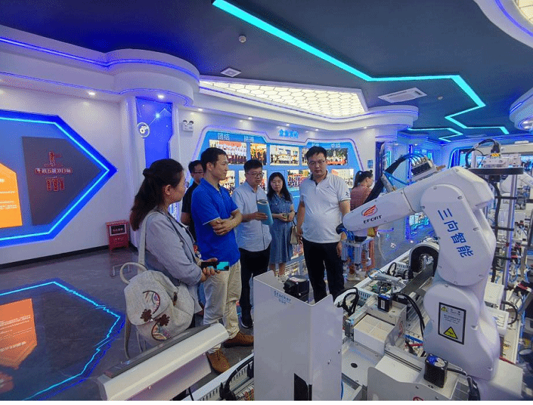 首先参观了三向智能厂史馆、工业机器人、世界技能大赛、一体化课程教学改革、智能网联汽车等实践体验中心。在此过程中主要了解产教融合、校企合作,工学交替培养大批复合型技术技能人才培养模式,建设培育产教融合型企业成功经验。