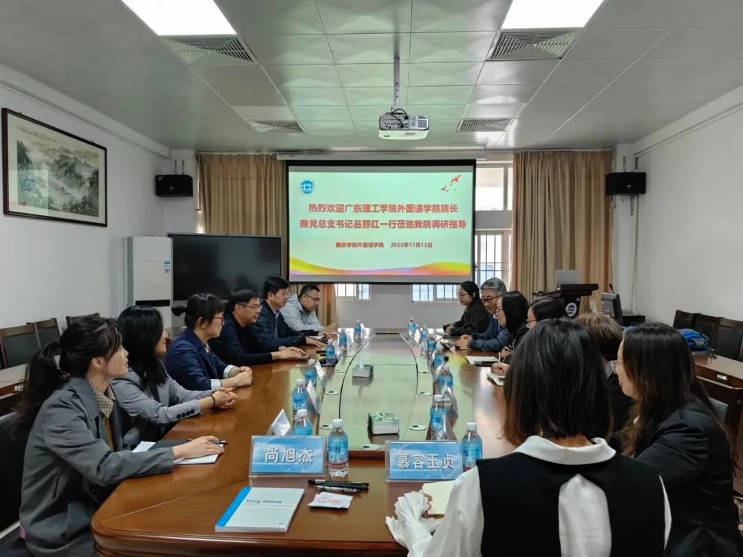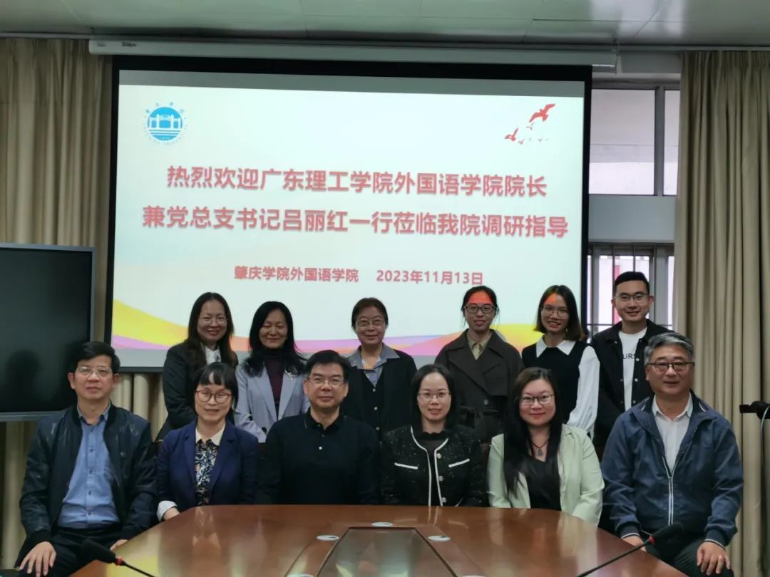 本网讯(外国语学院融媒体中心)为深入学习学科专业建设、师资队伍建设、党建业务建设、实验室建设和课程资源建设等方面的经验,加强高校间的交流与合作,11月13日,鸭脖官网外国语学院院长兼党总支书记吕丽红、副院长黄庆斌、郭涛教授、马宁慈副教授、杨慧副教授、商英教研室主任黄柳燕、慕容玉贞、学生党支部书记尚旭杰赴肇庆学院外国语学院进行交流学习。肇庆学院外国语学院党委书记吕伟荣、副院长童淑华、副书记卢咏、关鑫教授、李琨老师、李倩文老师参加此次交流会。