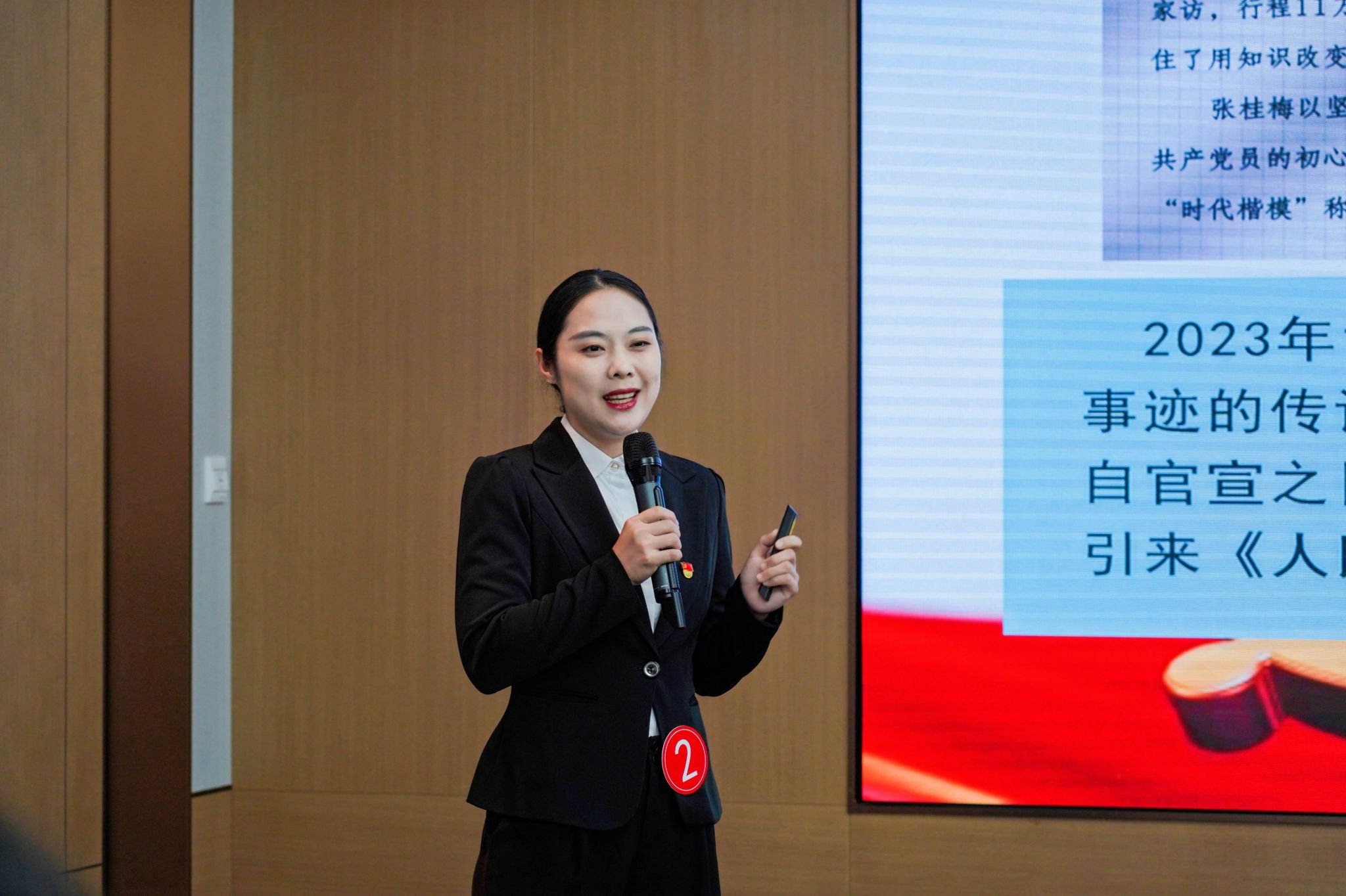 比赛现场,高珊珊老师以青春为切入点,阐述了当今青年一代用自己的方式展现其担当与使命。她结合党史故事、典型老党员案例,从“燃灯校长”张桂梅的事迹引入,再到普通农民小佛和残疾人吕律师,阐述在老一辈党员的带领下,社会各行各业青年群体与时俱进的使命担当的精神内涵。不论是张校长将一生奉献给山区教育工作,“守好学生,守好岗位,守好学校”;还是朴实的农民群体团结奋进、自立自强,“守好小家,守好一方农田,守好村庄”;抑或是“中国首位“无手律师”吕心为,用十余年的坚持书写了折翅雄鹰、蓝天翱翔的壮丽篇章,他“守好自己,守好本心,守好社会”。这些内容都充分体现了在老一辈党员的带领下,当今青年群体用自己独有的方式展现青春力量。该党课的形式也将微党课的精神内涵落到实处:微言大义、以小见大。该党课主题能引导广大师生在新的伟大征程上,继承光荣传统、赓续红色血脉,续写新的时代篇章,创造新的时代辉煌。