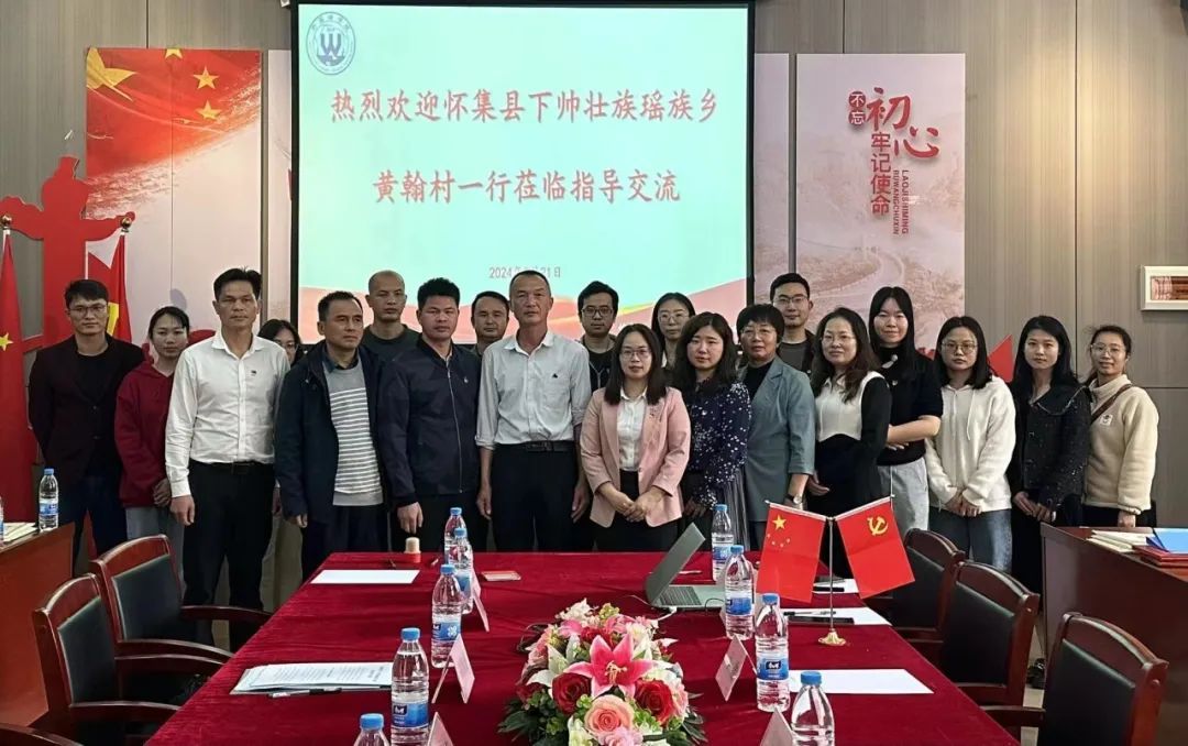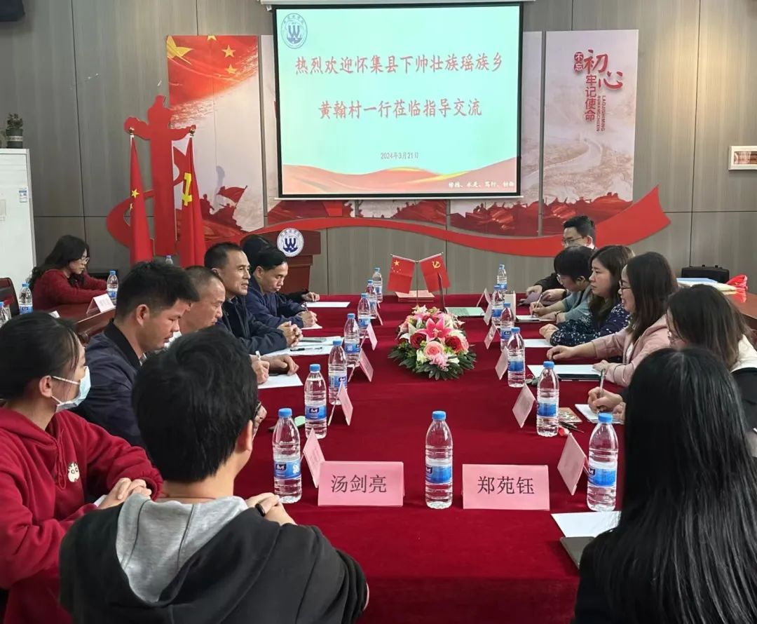 本网讯(外国语学院融媒体中心)为全面贯彻党的二十大精神,深入落实学习习近平总书记视察广东的重要讲话,推进“百县千镇万村高质量发展工程”全面落实,加强高校与农村基层党组织的建设,外国语学院与怀集县下帅壮族瑶族乡黄翰村于3月21日在37101会议室开展村校交流会。外国语学院党总支书记吕丽红主持,副书记吕媛、教工第一党支部书记黄柳燕、第二党支部书记聂雪琴、学生第三党支部书记尚旭杰、团委书记郑苑钰、融媒体中心指导老师马莉参加。