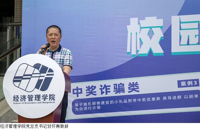 甘怀南在致辞中指出,网络发展导致诈骗手段不断翻新,他希望通过本次活动,可以提高同学们对网络诈骗的认识度,提高自我保护能力,共同营造安全的网络氛围。随后,魏甫龙老师给出了三点预防网络诈骗的建议:同学们不要轻信来历不明的信息,要稳固自己的心理防线,要提高自身的防范意识。侯小孩老师从刷单赚钱,网上借银行卡洗钱等方面分析,告诫同学们一定要提高警惕,保护好个人财产。谢所长通过讲述实际案例,剖析诈骗的常见套路,以此来提高同学们对电信诈骗的敏感度。他号召同学们下载注册“国家反诈中心APP“,提高自我保护能力。最后,学生代表蔡浩楠分享自己的感悟。他觉得本次反诈宣讲活动,能够有效帮助全院师生避免遭受诈骗损失,共同营造安全有序的校园环境。