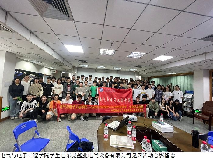 本网讯(电气与电子工程学院 叶运黎)为提升应用型人才培养质量,更好地帮助学生巩固专业知识、熟悉专业技能、提高就业能力,4月10日,在学工部部长叶运黎、学生第二党支部书记金洋、实习联络员李松名、辅导员陈思曼、高阳带领下,电气与电子工程学院组织2021级本科电气工程及其自动化61名同学赴东莞基业电气设备有限公司开展见习活动。