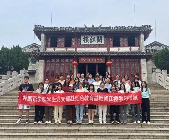 本网讯(外国语学院学生党建服务中心)为深入学习贯彻党的二十大精神,体悟革命先辈的精神,牢记初心使命,汲取奋进力量,进一步加强青年学生的爱国主义,外国语学院党支部于4月12日下午前往红色教育基地阅江楼参观学习。本次活动由学生第二党支部书记刘鑫带队,周明老师、陈浩翔老师以及学生发展对象同行。