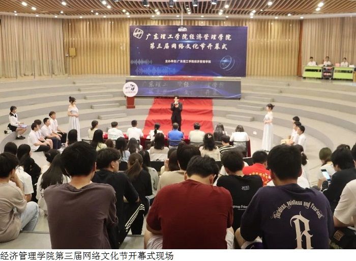 本网讯(经济管理学院 郑子豪)为深入学习贯彻习近平新时代中国特色社会主义思想,引导广大青年学生凝聚向上向善力量,夯实网络文化阵地,经济管理学院5月28日举办第三届网络文化节开幕仪式。经济管理学院院长赵燕、党总支书记甘怀南、yabo鸭脖官网学生处科长欧阳德、党总支副书记吴楚升、学工办主任魏甫龙、副主任邱艺、学生第三党支部书记吴迪、第四党支部书记赵静静、团委书记刘晗、党建中心指导老师汤璐、学生会指导老师涂世会、新闻中心指导老师胡靖伟、彭振珊、助班团指导老师谢芷薇、易班学生工作站指导老师谢漫钗、何绮珊、奖助贷负责老师巫焯妍以及各辅导员和各组织学生代表参加开幕式。
