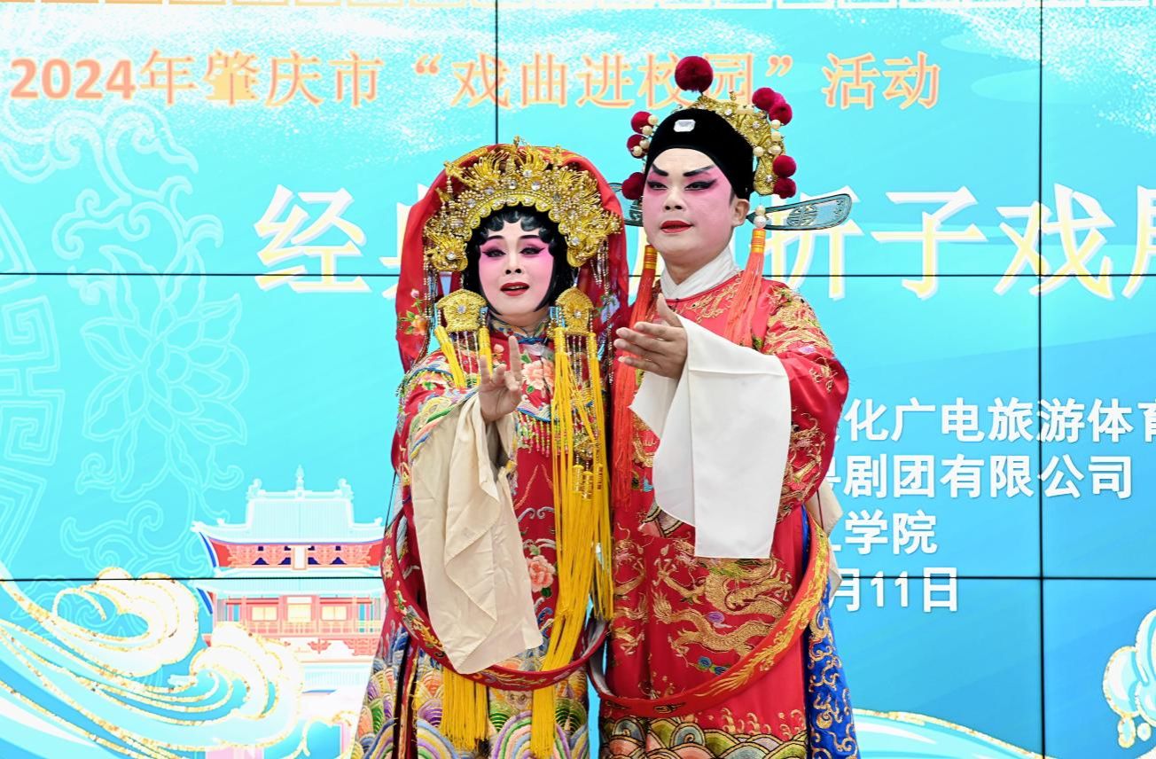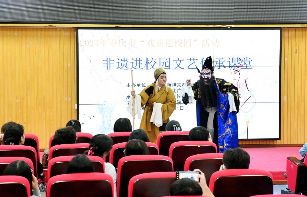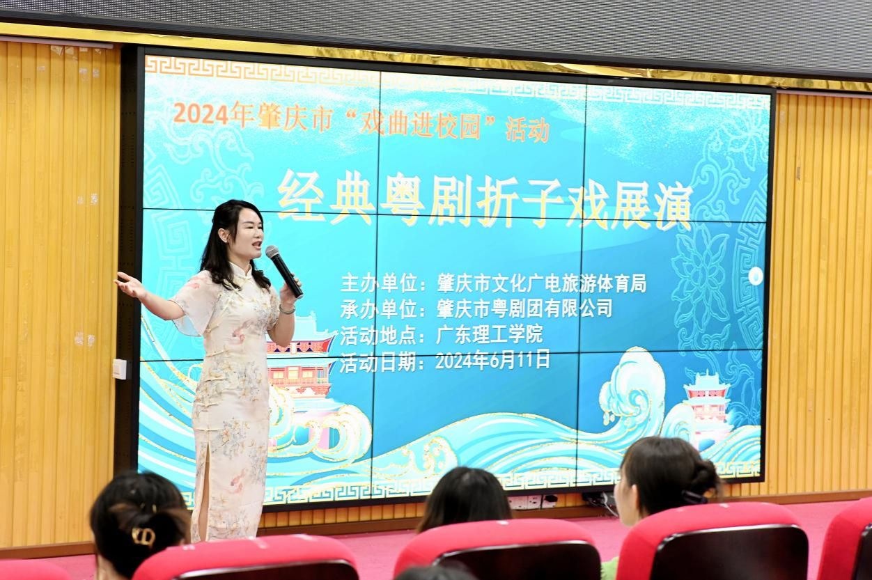 活动现场,来自肇庆市粤剧团的演员们为师生们带来了一场精彩纷呈的粤剧盛宴。广东戏剧家协会会员、肇庆市戏剧家协会理事、优秀青年花旦陆明霞作为主讲人,深入浅出地介绍了粤剧的历史沿革、表演技巧和艺术特色,使师生们对粤剧有了更全面的认识。