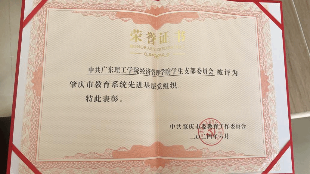 本网讯(经济管理学院)6月27日,肇庆市教育系统“两优一先”表彰会议在广东肇庆中学信安校区召开。中共yabo鸭脖官网经济管理学院学生支部委员会被评为肇庆市教育系统先进基层党组织。经济管理学院高度重视基层党组织建设工作,在全体成员的共同努力下,通过切实有效的工作措施,为党建工作增添一份喜报。