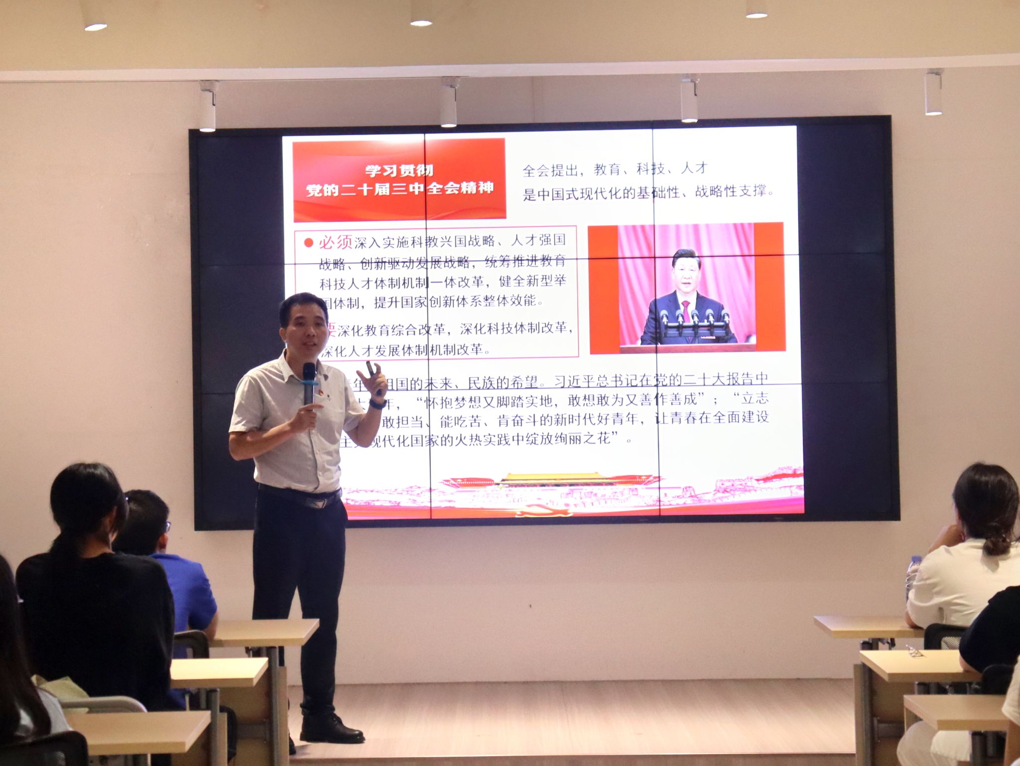 本次宣讲会的召开,既有政治高度,又有理论深度。进一步加深了全体师生对党的二十届三中全会精神的理解,使其坚定理想信念、牢记责任使命,以实际行动为学校、学院高质量发展贡献青春力量。