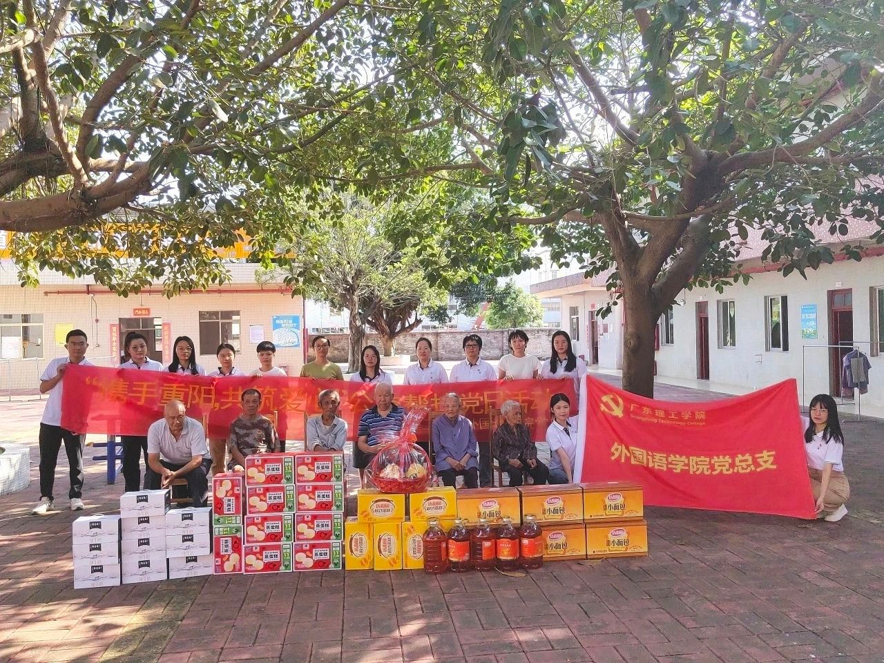 本网讯(外国语学院党建服务中心)为大力弘扬中华民族尊老敬老的传统美德,外国语学院党总支于10月11日重阳佳节当天深入高要活道镇敬老院开展慰问活动与志愿服务,同时对活道镇困难家庭进行慰问。