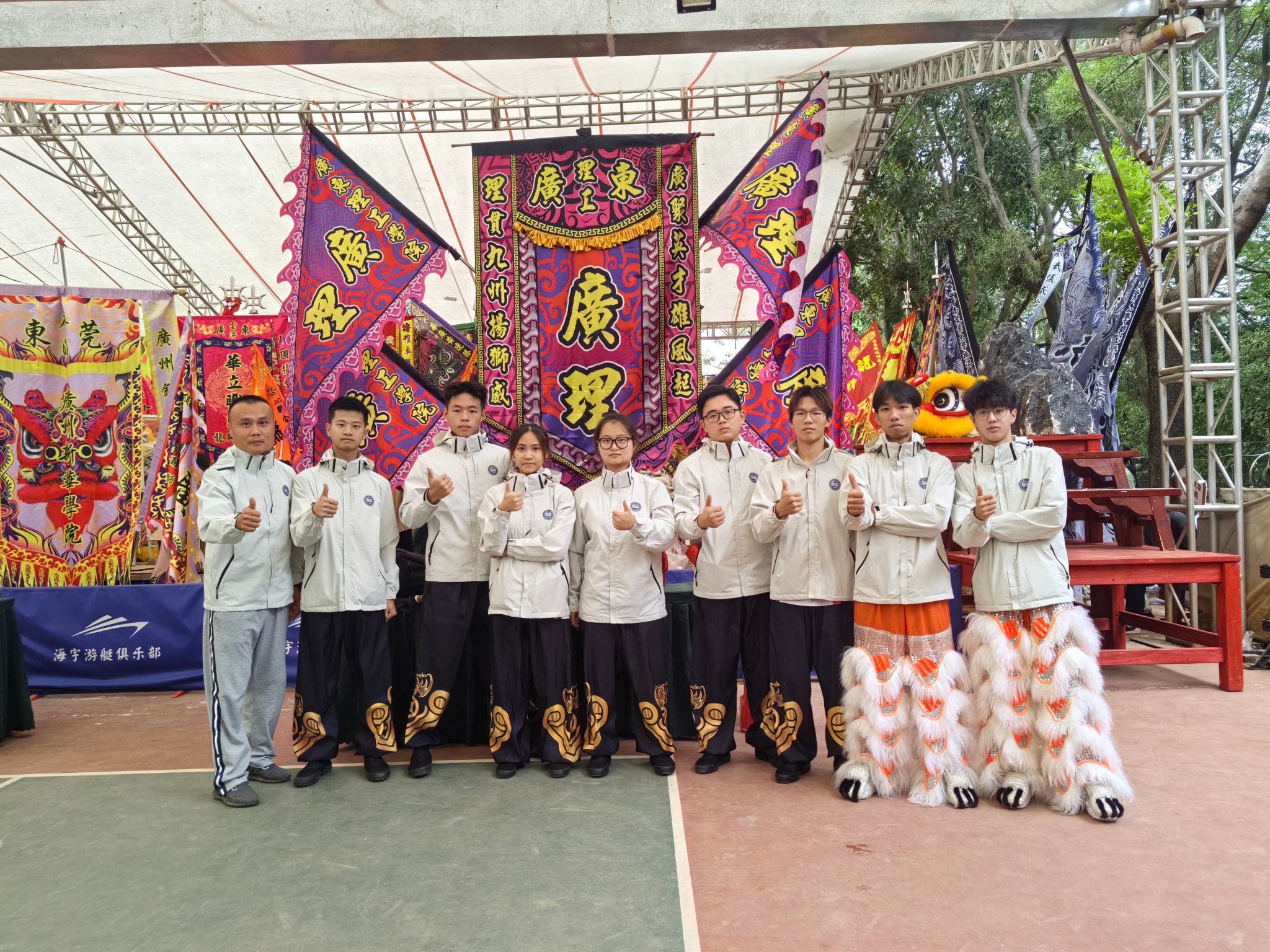 学校高度重视学生体育教育和传统文化教育。2020年成立了醒狮队,日常加强训练,时刻备赛。在学校领导及体育学院领导的大力支持下,本次大赛派出代表队8名队员第一次出征参赛。体育学院党总支书记夏磊担任领队,谢小龙老师担任教练。经过4天激烈的比赛,最终获得了男子甲组传统南狮第二名。