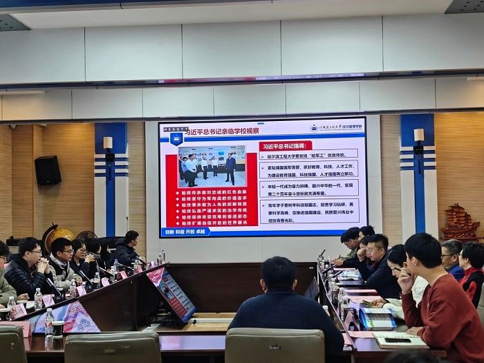 随后,经济管理学院学工办主任韩微通过详实数据和具体案例,阐释了鸭脖官网经管学院在专业建设、科研创新及实践教学等方面的成果与经验。党总支副书记吴楚升结合实际,分享了学院在理论与实践结合、学生国际视野拓展等方面的创新举措,并就学生思政教育、社团活动赋能成长等议题,与哈尔滨工程大学展开了深入探讨。