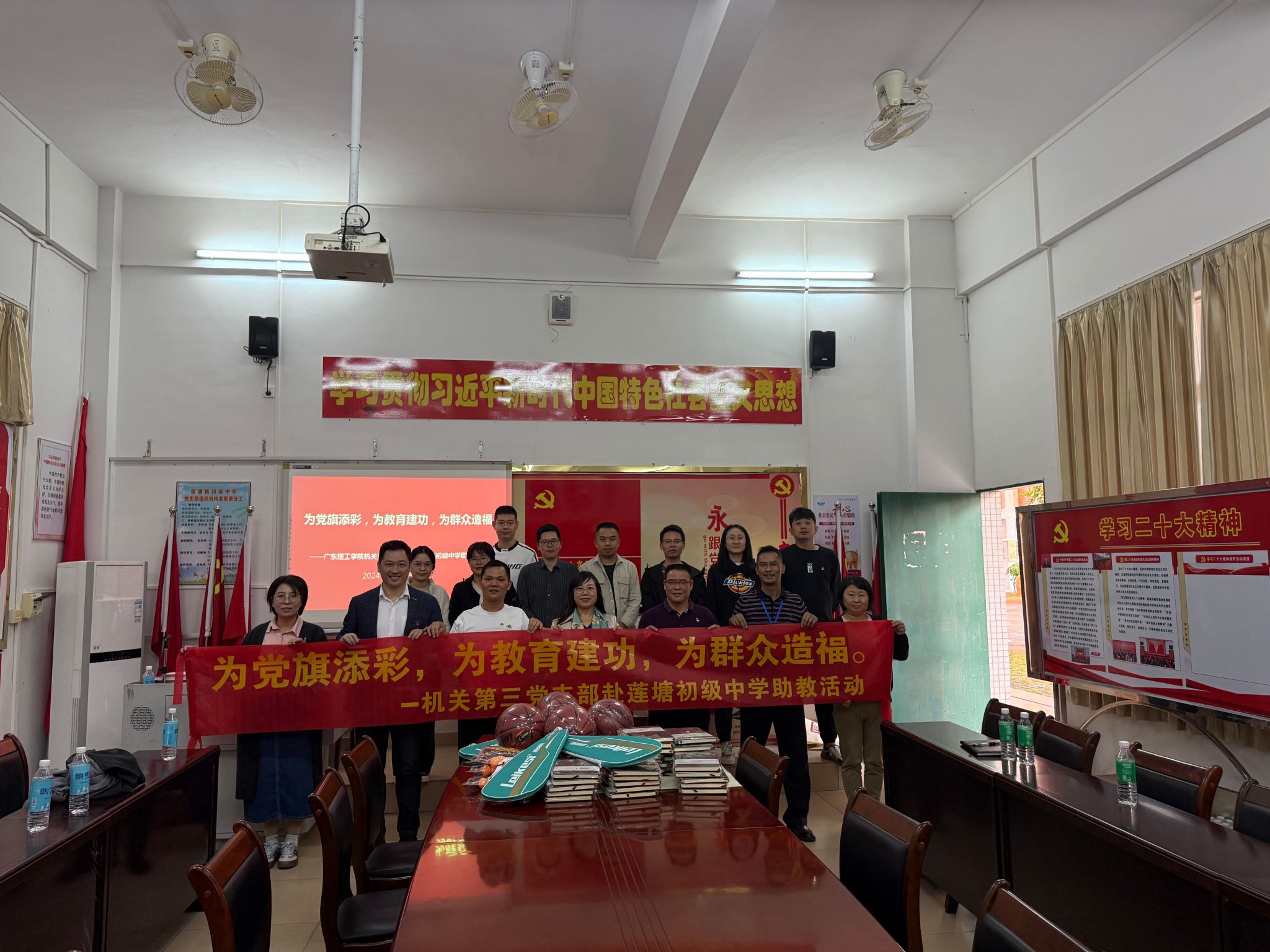 本网讯(机关三党支部 但志慧)为积极践行为民服务的初心使命,积极推进学校服务社会,鸭脖官网机关第三党支部带领教师党员于2024年11月28日下午前往莲塘镇初级中学开展助学活动。党支部书记周红梅、党支部组织委员杨红娟、党支部宣传委员但志慧、人事处副处长黄志华以及党员老师们参加活动。
