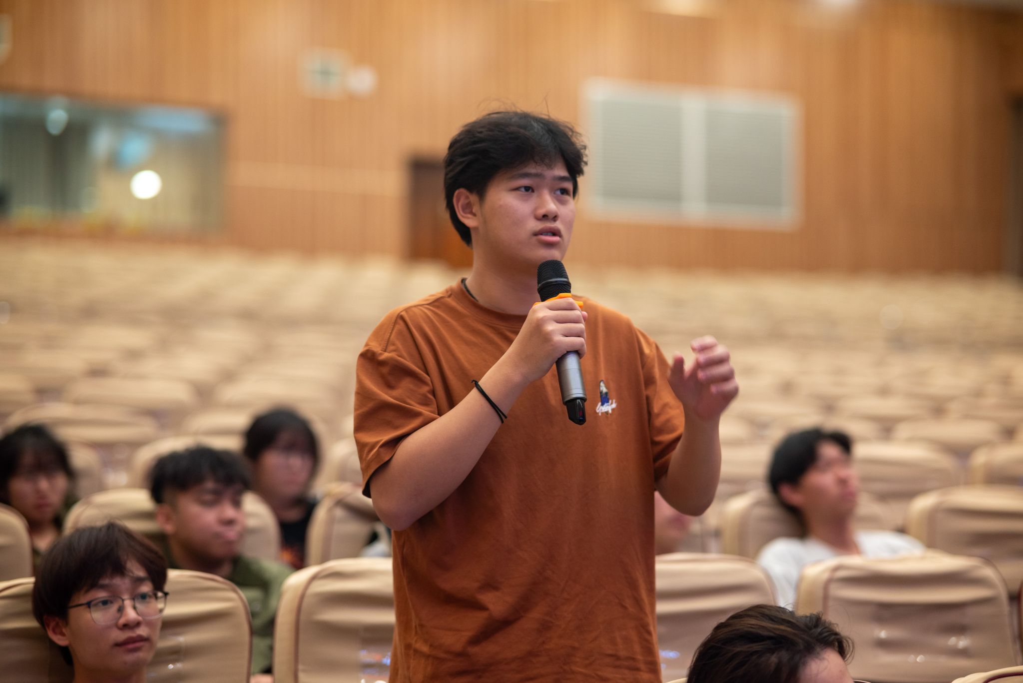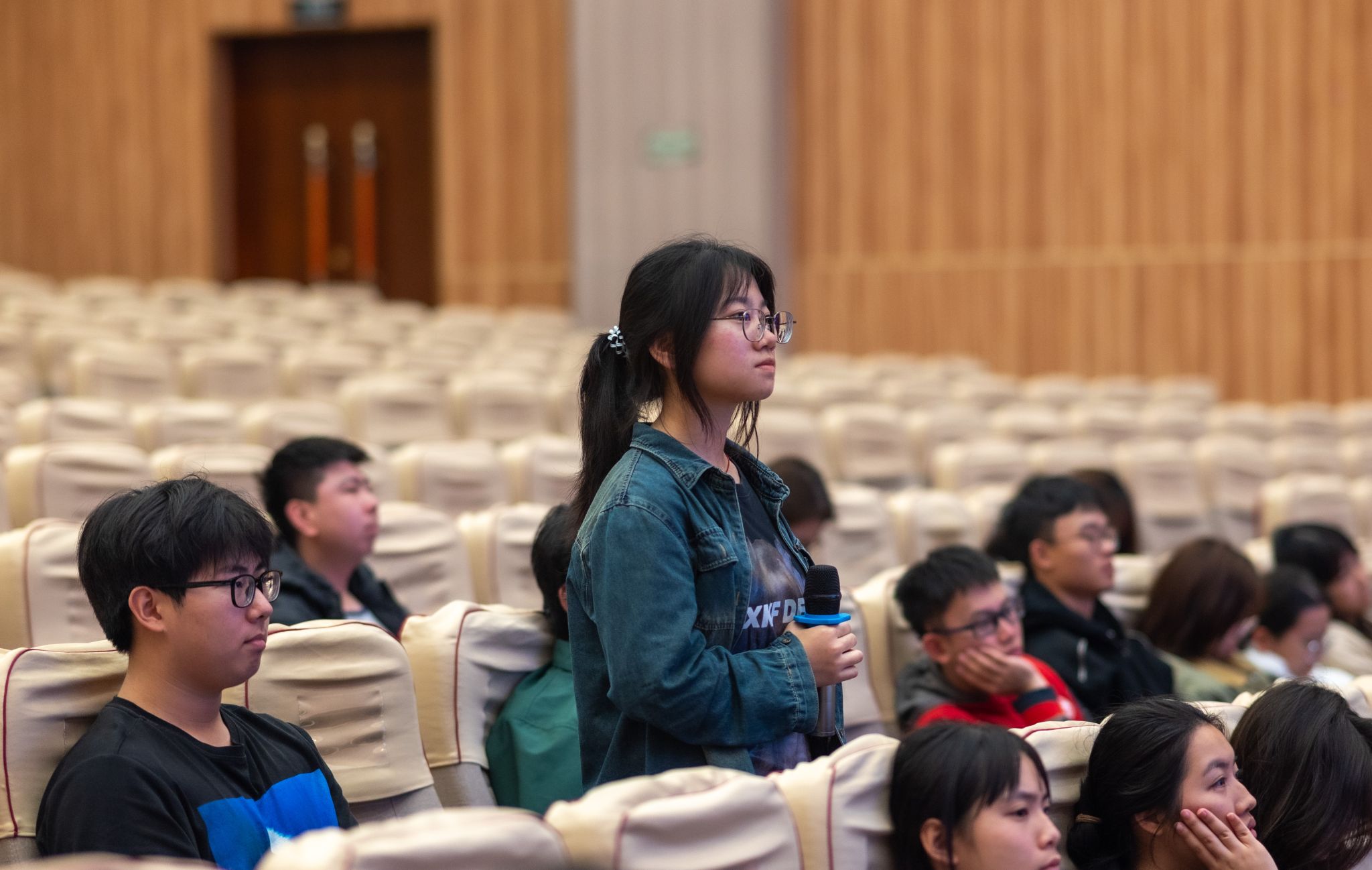 讲座过程中,莫家枝展示实例、分享创作心得,耐心解答同学们的提问。他强调,影像制作在艺术表达和信息传递中处于核心地位,团队合作与技术融合对于创造高质量视听作品至关重要。