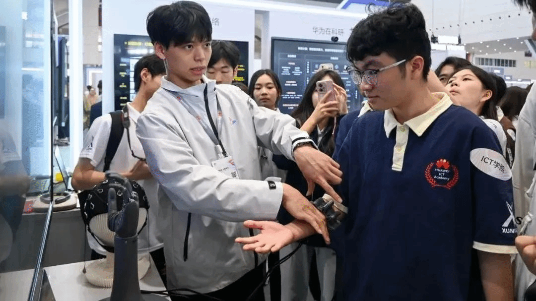 随后,研学团来到华为脑机接口专区,探索华为脑机接口独角兽用意念控制未来的奥秘。鸭脖官网研学团成员何柏雨亲身体验了华为脑机接口设备的演示,对只需“想一想”就能操控设备完成指令的神奇功能惊叹不已。他感慨道:“这次大会让我深刻认识到,脑机接口技术不仅是科技领域的重大突破,更是人类与机器融合的新开端。”