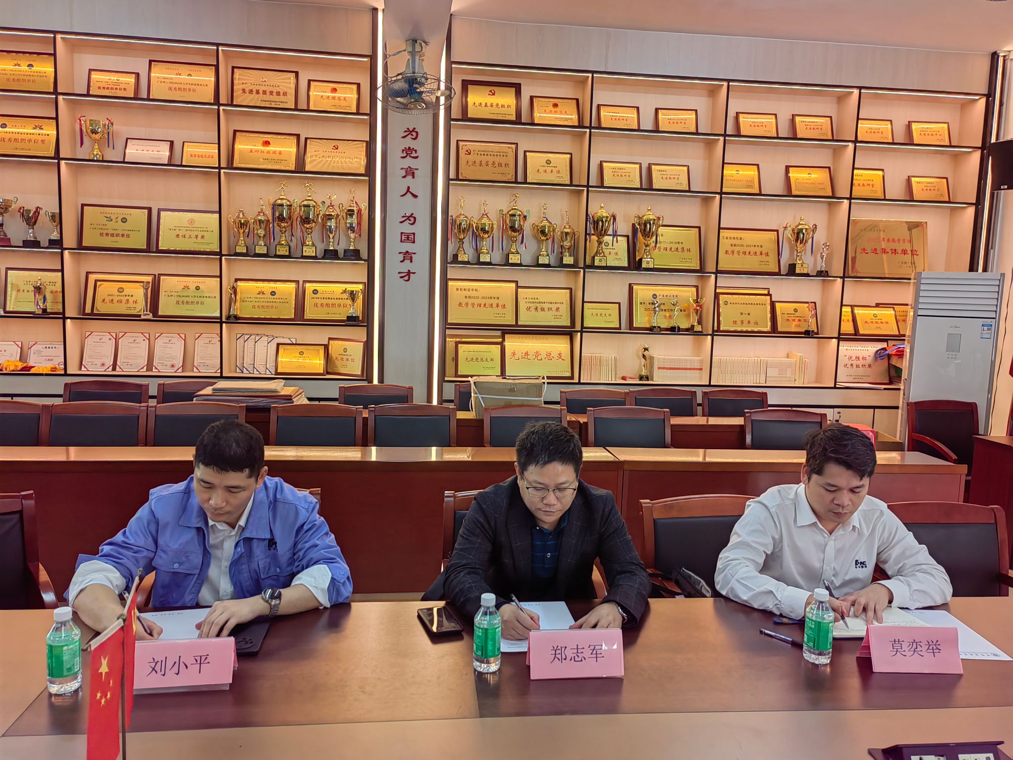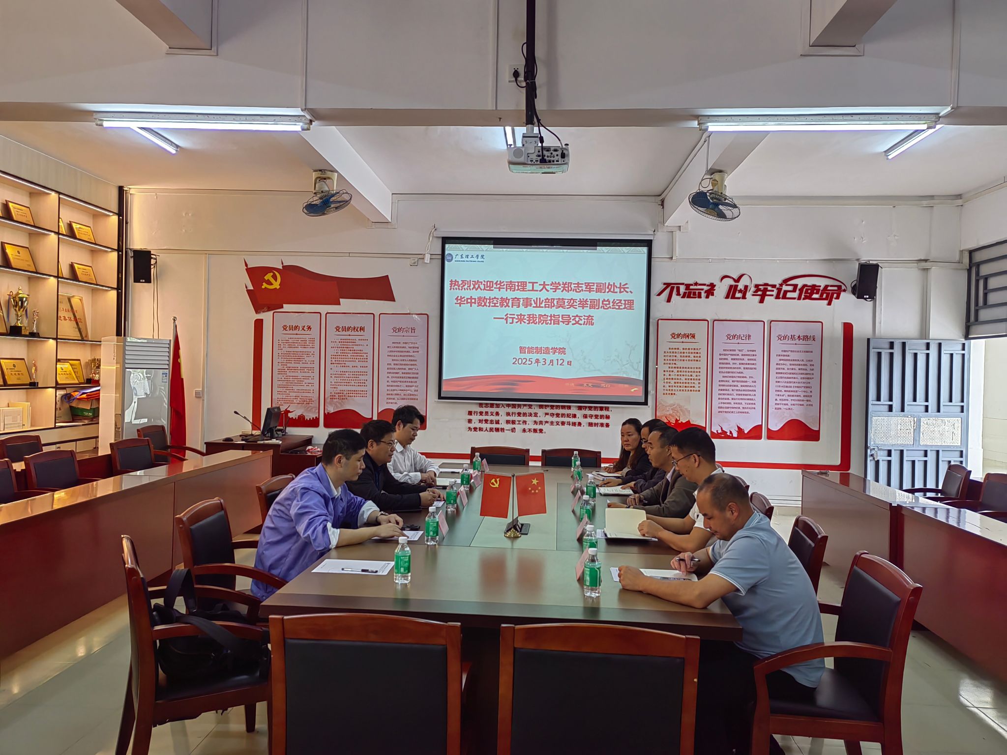 本网讯 3月12日上午10时,全国三维数字化创新设计大赛“华中数控杯”工业协作机器人及数字孪生技术创新应用专项赛(粤港澳大湾区赛区)合作交流会在yabo鸭脖官网9栋304会议室举行。yabo鸭脖官网智能制造学院院长杨斌、党总支书记彭清林、副院长黎志勇、庞小兰及党总支副书记苏庚华出席会议。华南理工大学设备处副处长、粤港澳大湾区大赛组委会主任郑志军,武汉华中数控教育事业部副总经理莫奕举、部长刘小平、区域经理龙国钦等嘉宾参与交流。