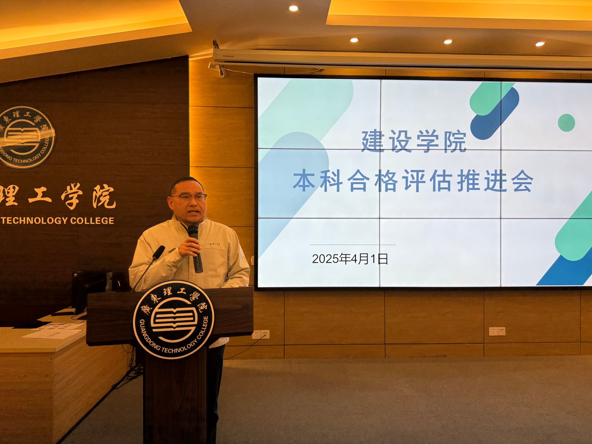 本网讯(建设学院)4月1日下午,建设学院在行政楼学术报告厅召开本科教学工作合格评估推进会。此次会议旨在进一步明确评估工作重点,凝聚全院力量,做好本科教学工作合格评估准备工作。会议由党委书记周景报主持,党委副书记、院长史会全,党委副书记焦根平,副院长蒙子伟,副院长王金歌及全体教师出席本次会议。