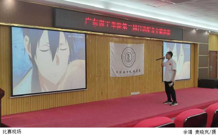 比赛中,入围的十一组参赛选手一一展示作品。同学们流畅的语言表达和清晰流利的配音表演赢来了在场观众的阵阵喝彩。