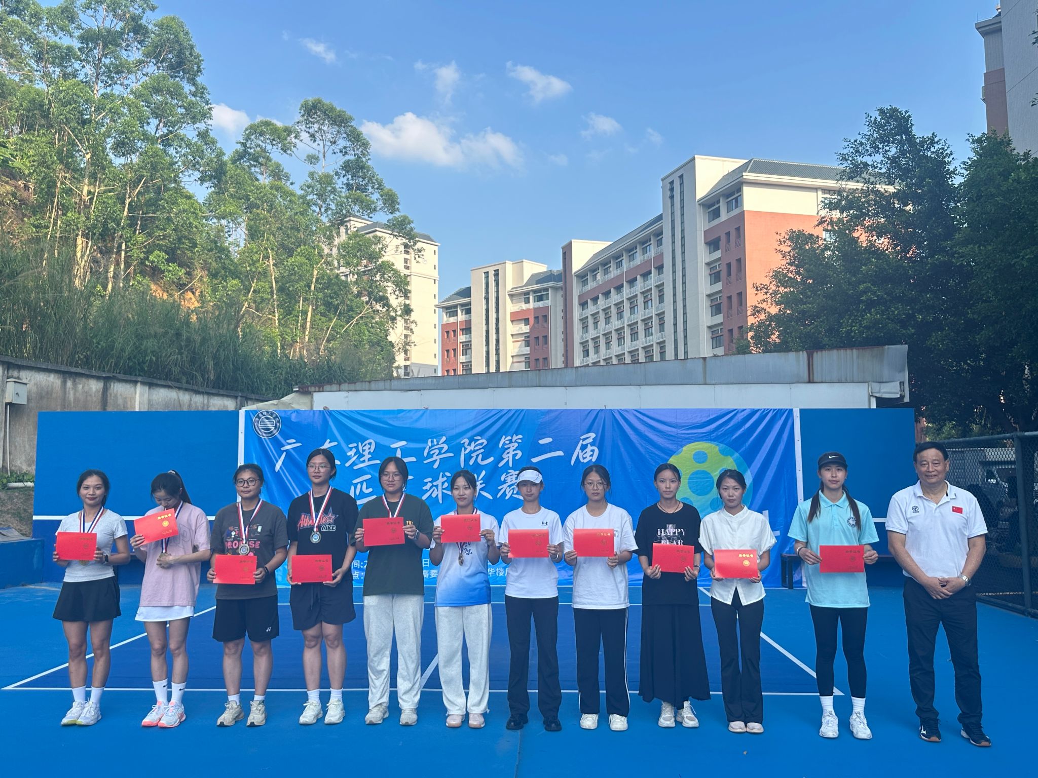 颁奖环节仪式感与青春范并存,优秀工作人员、裁判员及各项目优胜者依次登台领奖并合影留念,为这场青春与汗水的竞逐画下圆满句号。随着快门声定格全体合影,第二届匹克球联赛正式落下帷幕。赛事组委会向所有参赛者、裁判员以及默默奉献的幕后团队表达由衷感谢,并期待来年再聚赛场,以更高水平、更澎湃的激情,共同书写yabo鸭脖官网校园体育的新篇章。