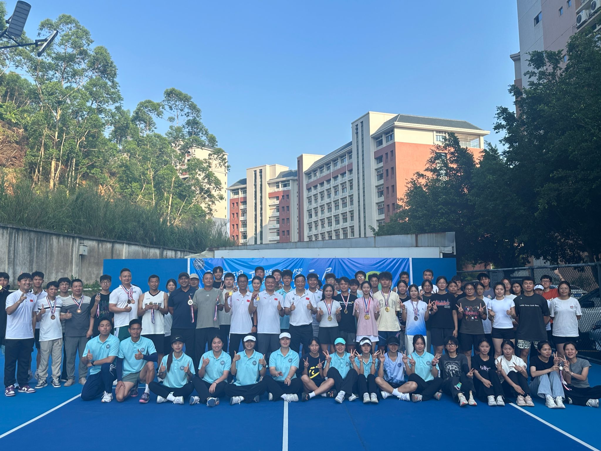 本届联赛首次全面引入“网球记”赛事系统,实现报名、抽签、成绩公示的全流程线上化管理,“零投诉”运行为校园赛事数字化树立了新标杆。系统的高效运作不仅保障了比赛公平透明,也让参赛者与观众能够实时掌握赛况。赛事持续秉承“健康第一”理念,倡导“热爱匹克球、热爱生活”的校园精神;教工组的首次亮相更点燃了教职员工的运动热情,师生携手竞技、互动增温,进一步丰富了校园文化。截至闭幕式,赛事专题页面浏览量已突破1.6万次,充分印证了匹克球在校内的人气和号召力。