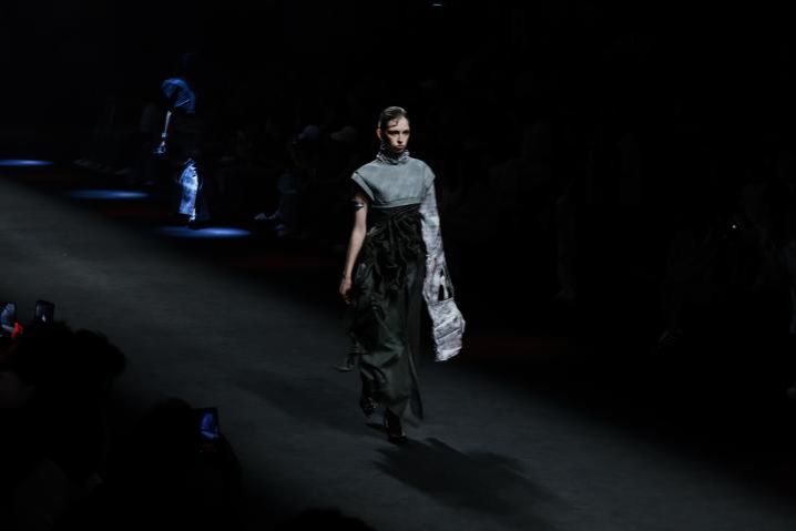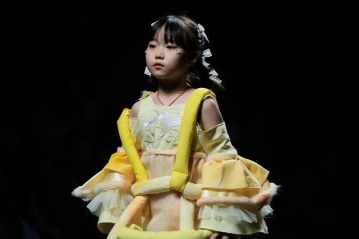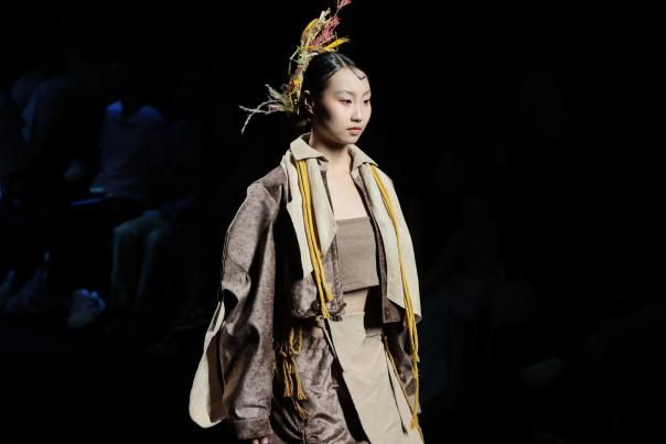 整场发布会涵盖三大主题、23个系列原创作品,通过动态几何、非遗文化与可持续理念的巧妙融合,展现了新生代设计师对时尚产业的深刻思考。