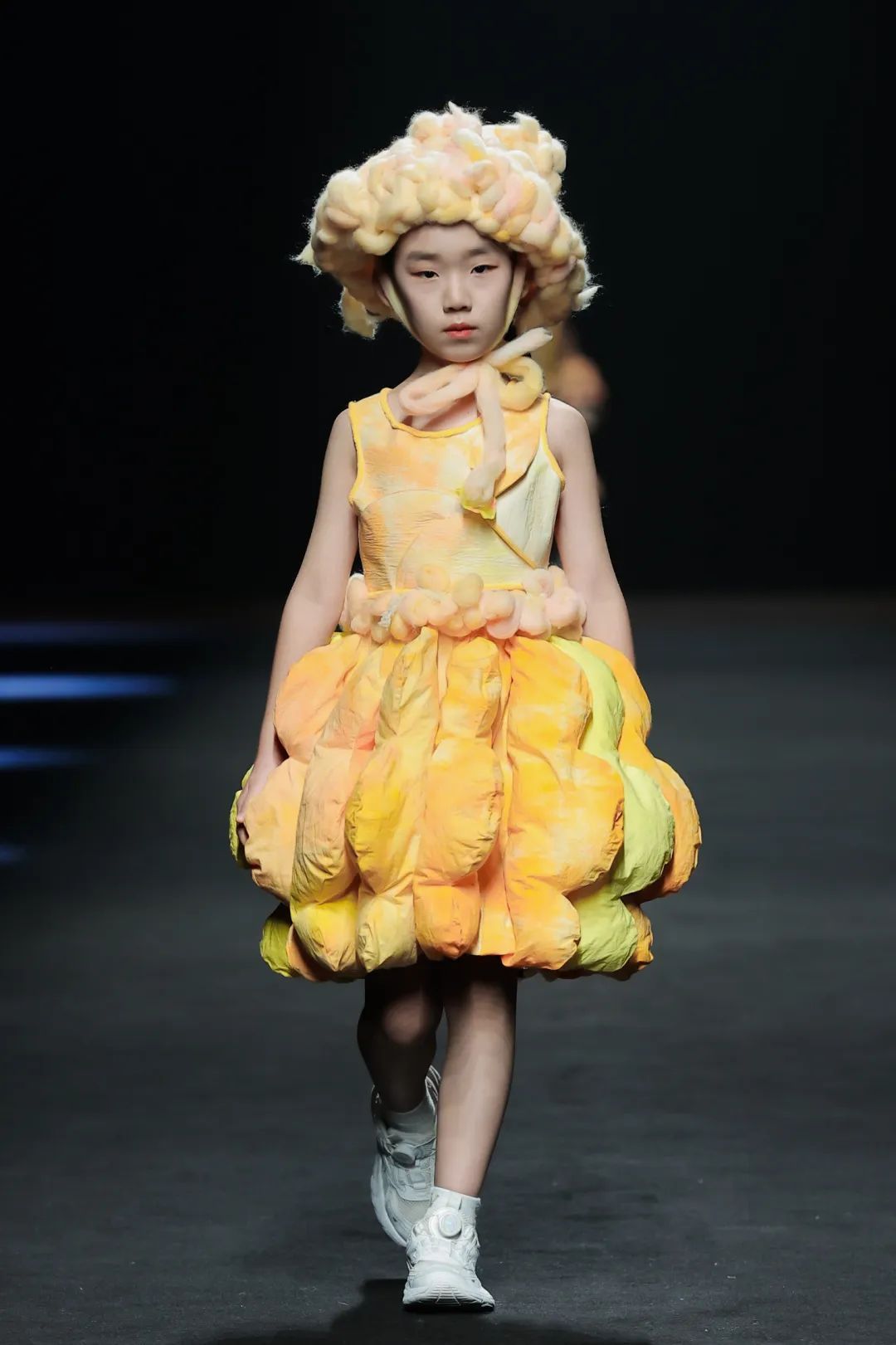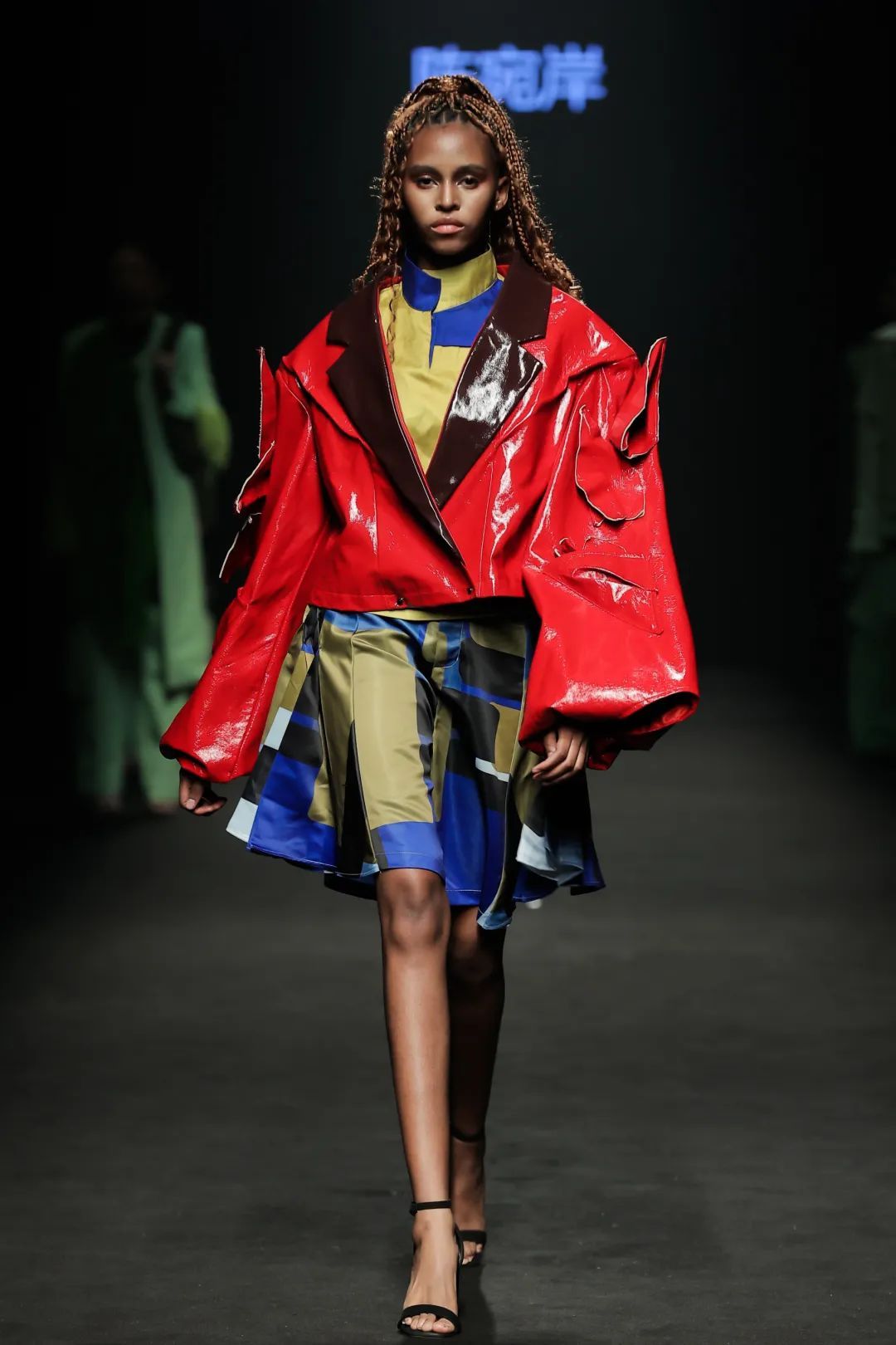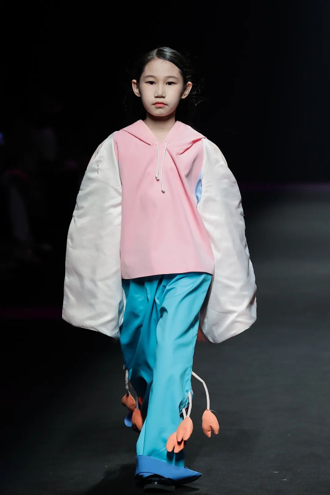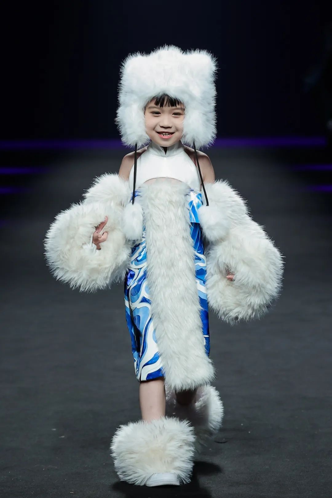 整场大秀分3个主题演绎:主题一《暗夜森灵》以赛博霓虹重塑空间拓扑,呈现未来衣橱的无限可能;主题二《数字涂鸦》以泼墨笔触勾勒立体数字,撞色拼接剪裁利落,街头潮感十足;主题三《国色新韵》则用古布与数字绣纹重构经典,在光影迷宫中展开一场跨越千年的对话。