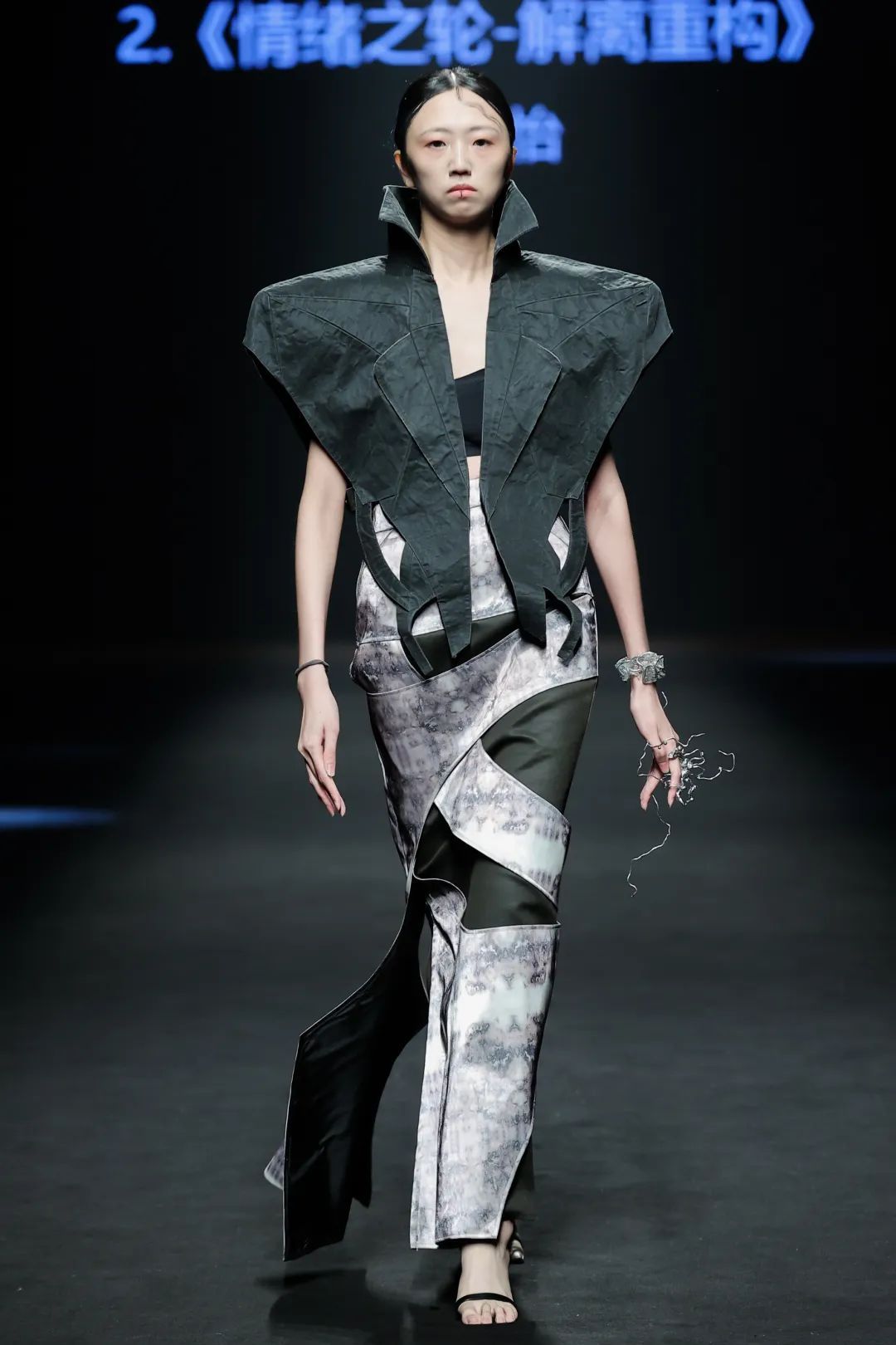经过精彩展演和专业评审,最终入围“广州国际轻纺城杯”2025广东大学生优秀服装设计大赛复赛的创意佳作分别是陈绍浪、黄浩强的设计作品《极地探索》,褚欣欣的设计作品《蚀韵》和李慧的设计作品《土地感应》。