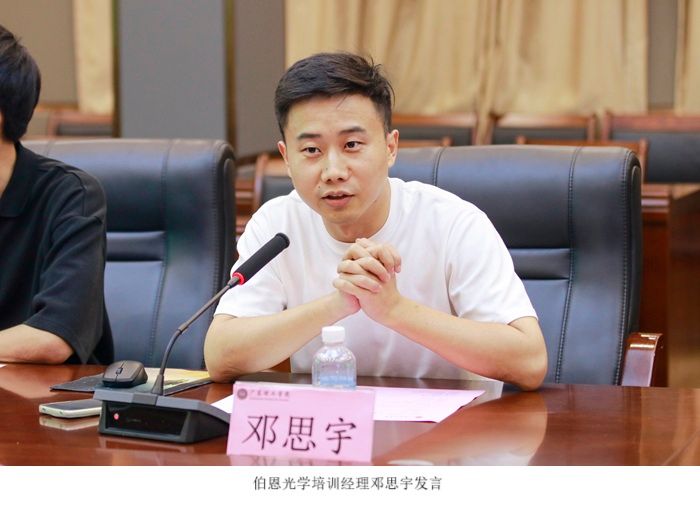 在自由交流环节,校企双方围绕伯恩产业学院的建设规划、专业共建、学生实训等议题展开热烈讨论。校企合作办公室、智能制造学院、信息技术学院等相关单位负责人,与伯恩光学培训、招聘团队负责人邓思宇就课程体系对接、企业导师派驻、联合研发等方面进行深入交流。
