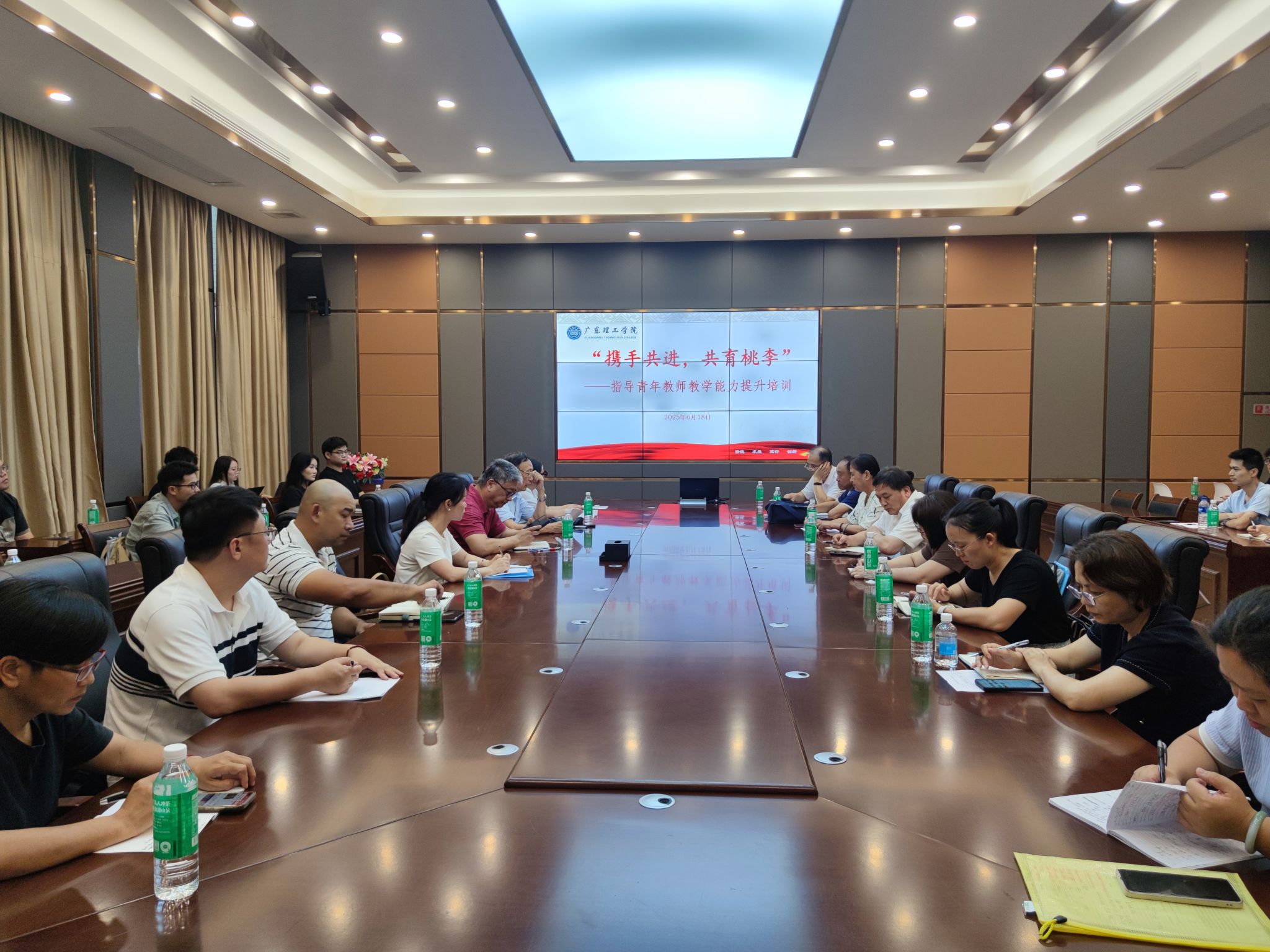 本网讯(教学督导室)6月18日下午,教学督导室在高要校区行政楼101会议室组织青年教师进行“携手共进,共育桃李”——指导青年教师教学能力提升培训。教学督导室主任关健、校级专职督导王振宇、校级专职督导吴霞、二级教学单位督导组组长及青年教师代表参加本次培训。