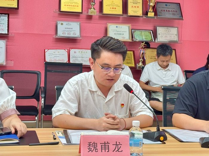 本网讯(经济管理学院 阮豪胜、谭欣颖)2025年7月11日,经济管理学院召开新任党委班子任职见面会。学校党委副书记张宗珊、原学院党委书记甘怀南(现智能制造学院党委书记)、新任学院党委副书记吕媛、魏甫龙、学院院长赵燕、副院长伦肇亮及各教研室主任、全体辅导员出席会议。会议由学院副院长黎传熙主持。