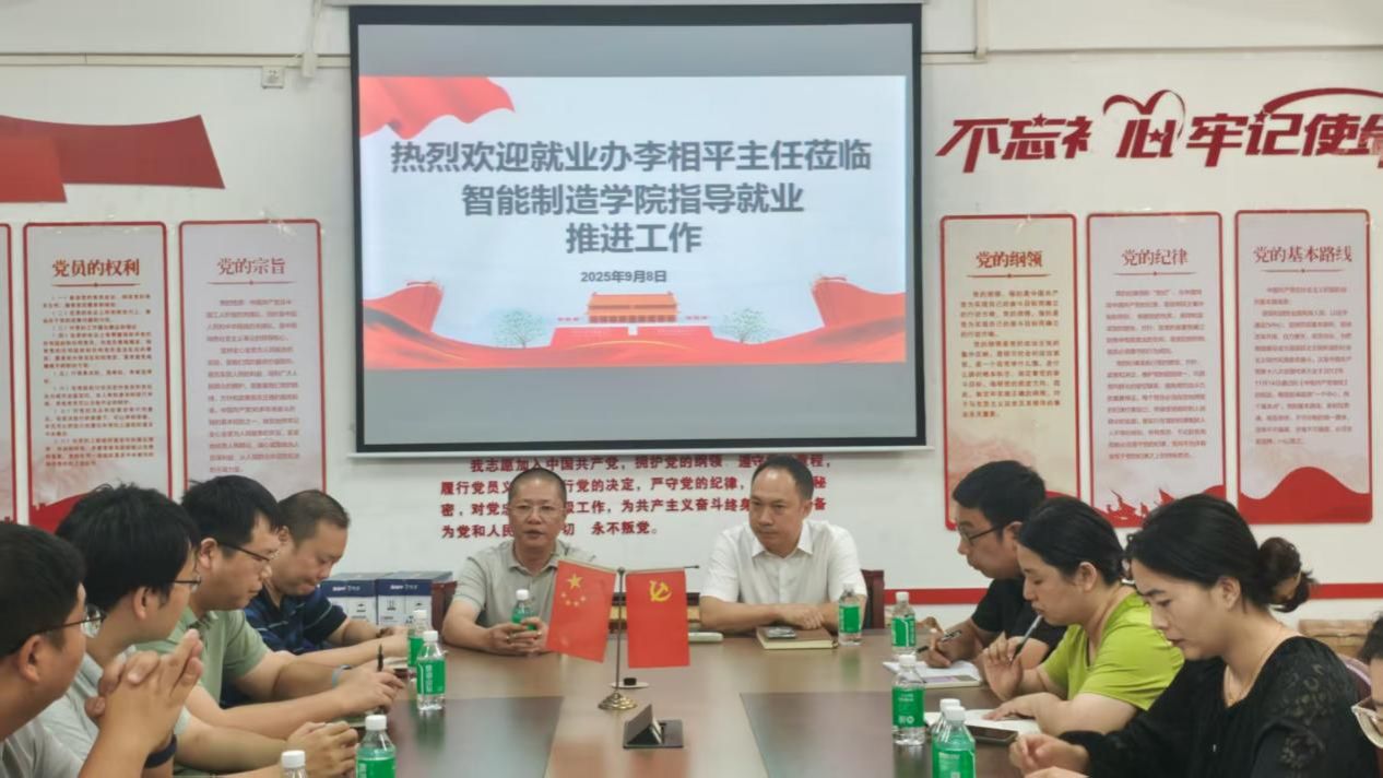 本网讯(智能制造学院)2025年9月8日上午10时30分,yabo鸭脖官网就业办公室主任李相平率队赴智能制造学院,就2025届毕业生就业工作开展专项推进会议。智能制造学院相关领导、毕业班辅导员及就业工作负责同志参会。