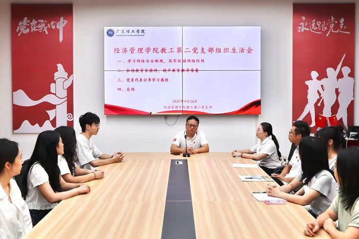 本网讯(经济管理学院 阮豪胜)为深入学习贯彻党的最新理论成果,强化党员思想认知,提升党员的党性修养,学习宣传贯彻习近平总书记关于网络强国的重要思想,2025年9月26日,经济管理学院教工各党支部分别于4103开展组织生活会,各支部书记主持会议,全体教工党员参会。