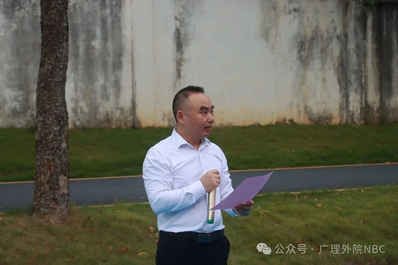 本网讯(外院团委、学生会)金秋送爽,运动正当时!为激发学生体育热情,搭建交流协作平台,外国语学院于2025年10月28日在38栋篮球场隆重举行篮球赛与羽毛球赛开幕式。莅临本次开幕式的嘉宾有:外国语学院党委书记廖振宇、团委书记刘玥、学生第二党支部书记兼学生党建服务中心指导老师刘鑫、奖助贷经办人兼篮球赛指导老师黄子瑜老师以及羽毛球赛指导老师蒋婷婷。