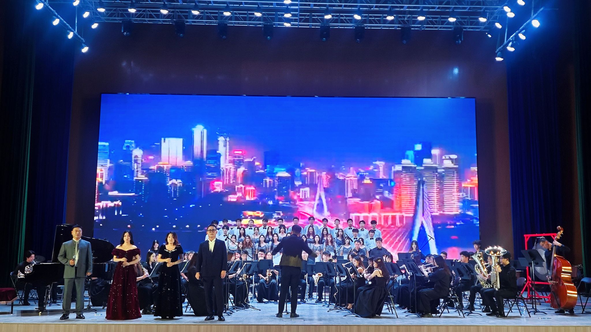 音乐会在全体合唱《歌唱祖国》的歌声中圆满落幕。整场演出不仅是视听盛宴,更是两校美育融合、共育新人的生动见证,展现了艺术在启迪思想、塑造心灵方面的重要力量。