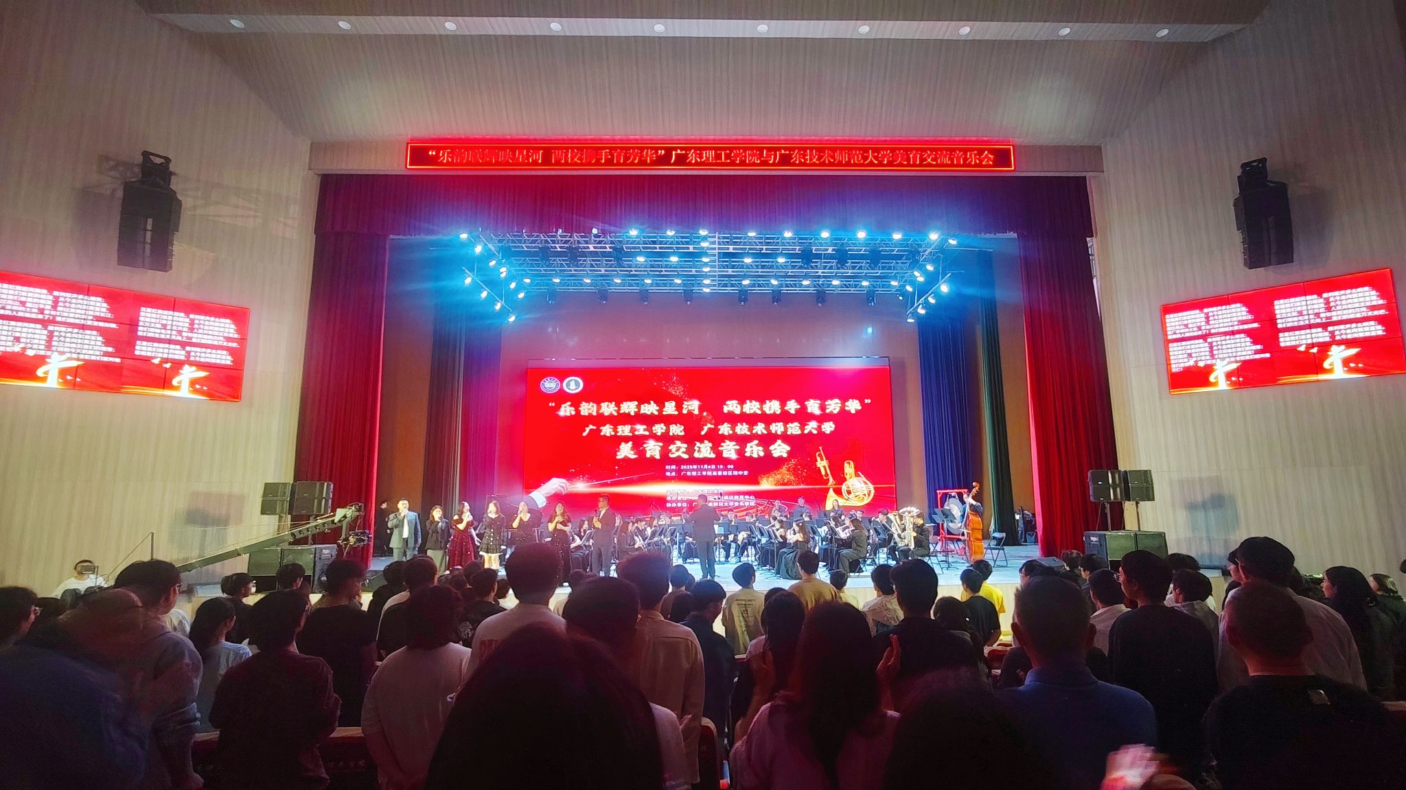 本网讯(通识教育中心 江天歌)11月4日,yabo鸭脖官网通识教育中心与广东技术师范大学音乐学院联合举办的“乐韵联辉映星河 两校携手育芳华”美育交流音乐会,在鸭脖官网翔中堂圆满落幕。本次音乐会获得了校领导的大力支持和校团委的鼎力协助。
