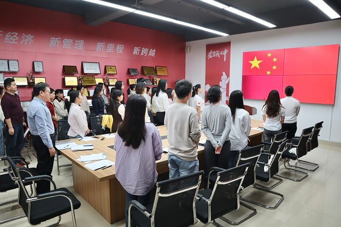 随后,随着庄严的国歌声,教工第二党支部预备党员转正大会正式开始。